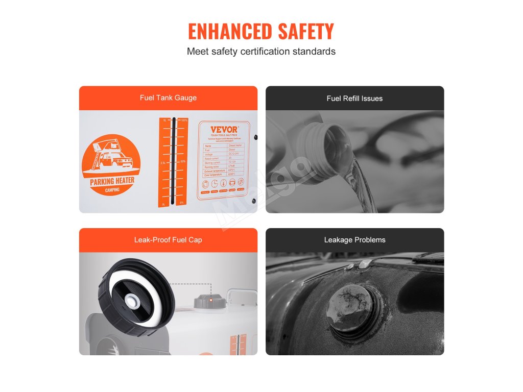 Okrem ochrany proti prehriatiu je toto naftové vykurovacie zariadenie do auta vybavené indikátorom hladiny paliva a uzáverom palivovej nádrže odolným proti úniku - všetko vylepšenia, ktoré zvyšujú bezpečnosť pri dlhodobom používaní.