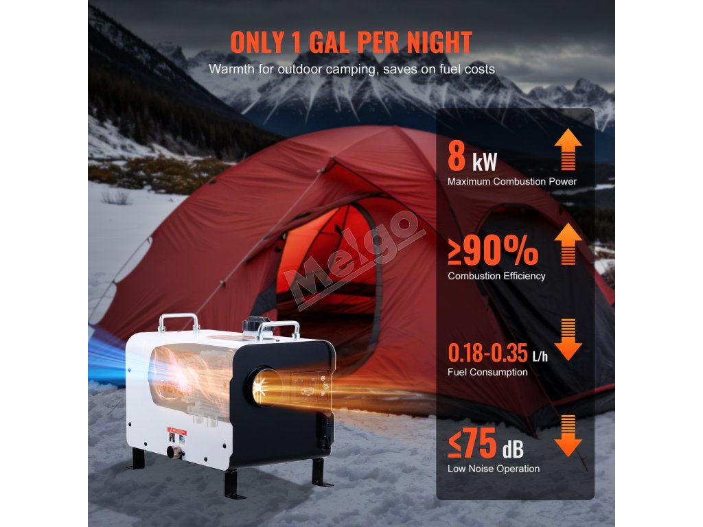 Toto naftové kúrenie vybavené prémiovým tlmičom a palivovým čerpadlom pracuje ticho bez toho, aby rušilo váš odpočinok alebo jazdu. Jeho dizajn s veľkou rukoväťou uľahčuje prenášanie do garáže, obytného vozidla alebo na vonkajšie miesta.