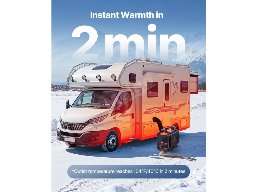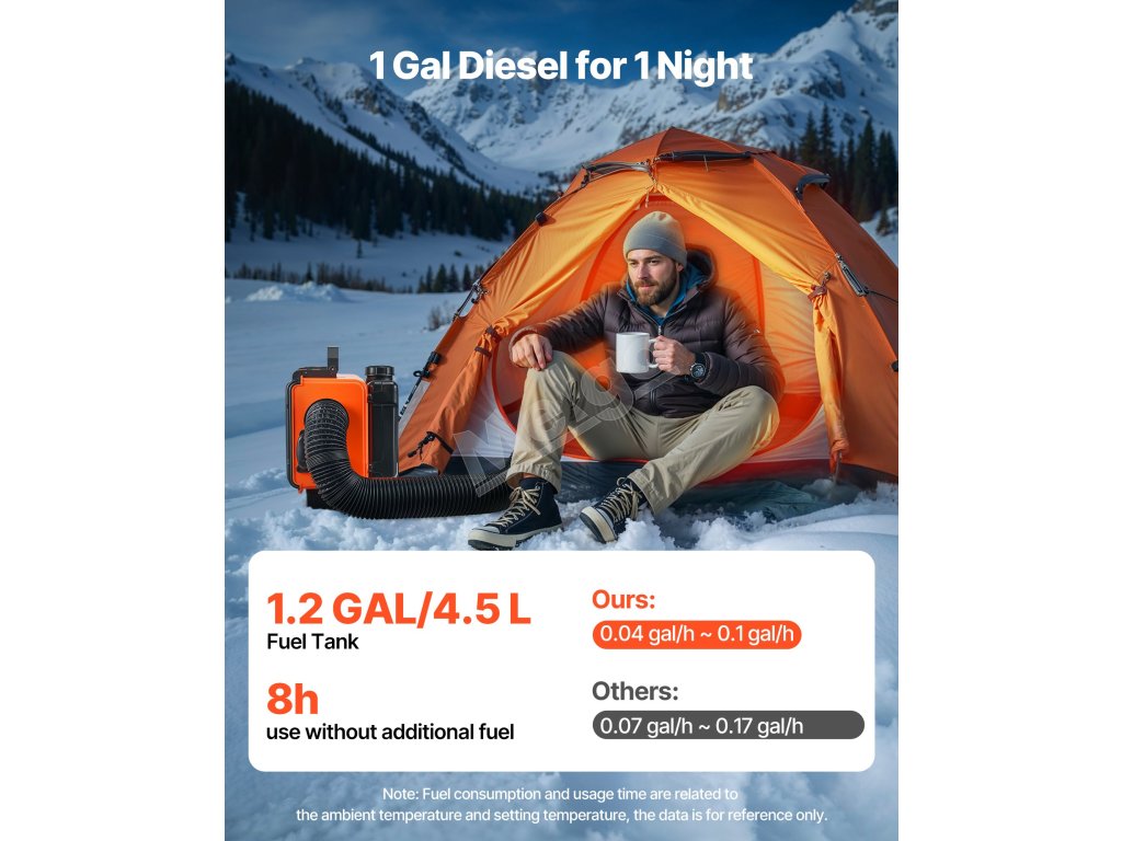 Tento prenosný naftový ohrievač s výkonom 8 kW sa pripája k napájaniu vozidla a obsahuje adaptér pre napájacie stanice alebo napájanie z domácnosti striedavým prúdom. Poskytuje rýchle a účinné vykurovanie pre stany, rybárčenie na ľade, obytné vozidlá, nákladné vozidlá, SUV, dodávky a ďalšie. Je navrhnutý tak, aby zvládol chladné prostredie a rýchlo vyhrieva veľké priestory.