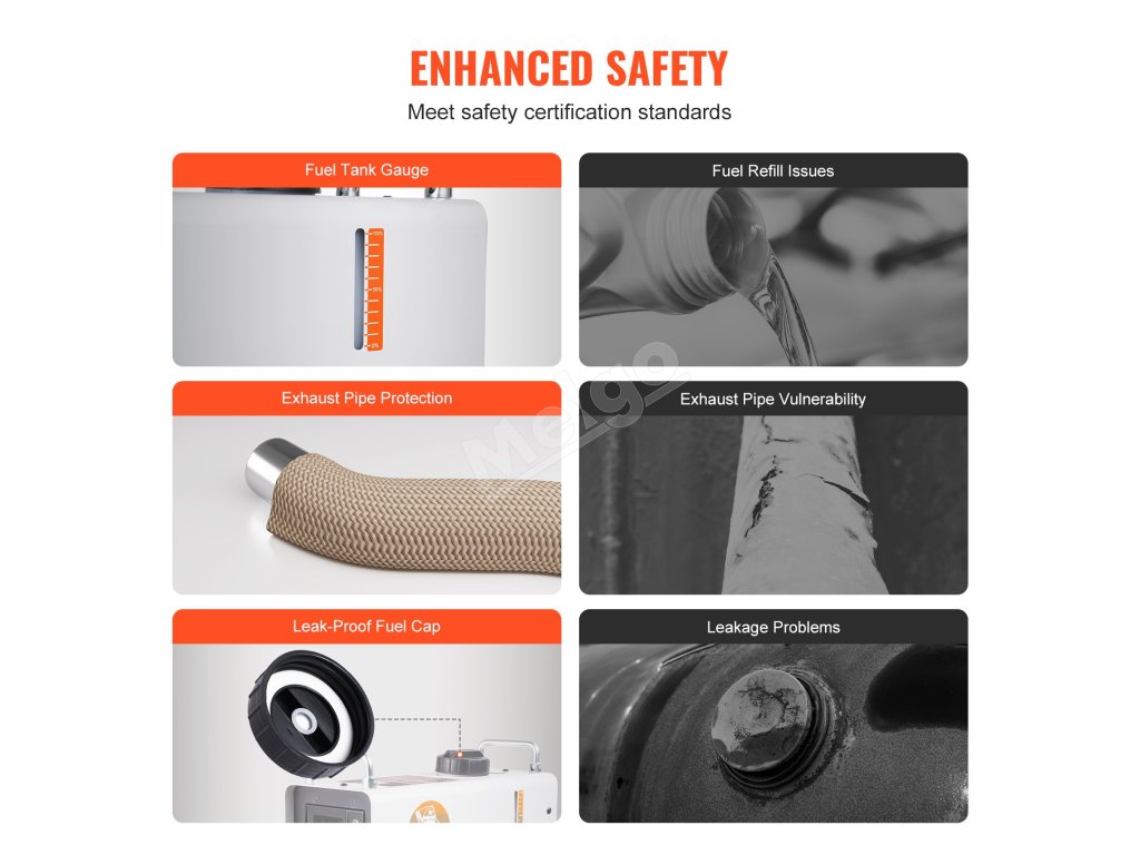 Okrem ochrany proti prehriatiu je toto naftové vykurovacie zariadenie do auta vybavené indikátorom hladiny paliva a uzáverom palivovej nádrže odolným proti úniku - všetko vylepšenia, ktoré zvyšujú bezpečnosť pri dlhodobom používaní.