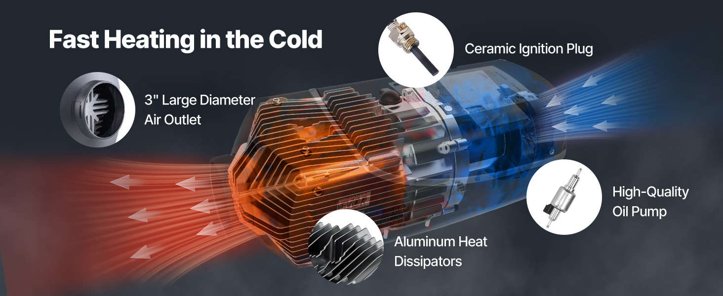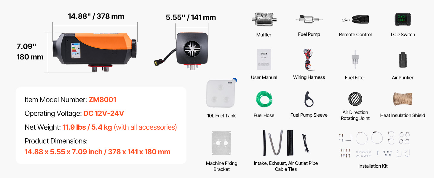 Toto naftové vykurovacie zariadenie je navrhnuté na napájanie 12-24 V a je vhodné pre širokú škálu vozidiel vrátane osobných a nákladných automobilov, lodí, bagrov a ďalších. Rozlúčte sa s mrazivými zimnými ránami a zostaňte v teple bez ohľadu na to, kde sa nachádzate.