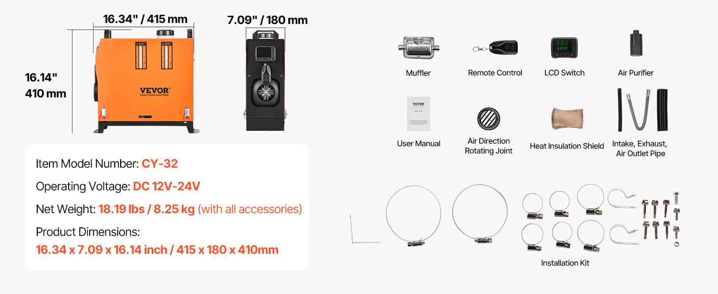 Toto naftové vykurovacie zariadenie je navrhnuté na napájanie 12-24 V a je vhodné pre širokú škálu vozidiel vrátane osobných a nákladných automobilov, lodí, bagrov a ďalších. Rozlúčte sa s mrazivými zimnými ránami a zostaňte v teple bez ohľadu na to, kde sa nachádzate.