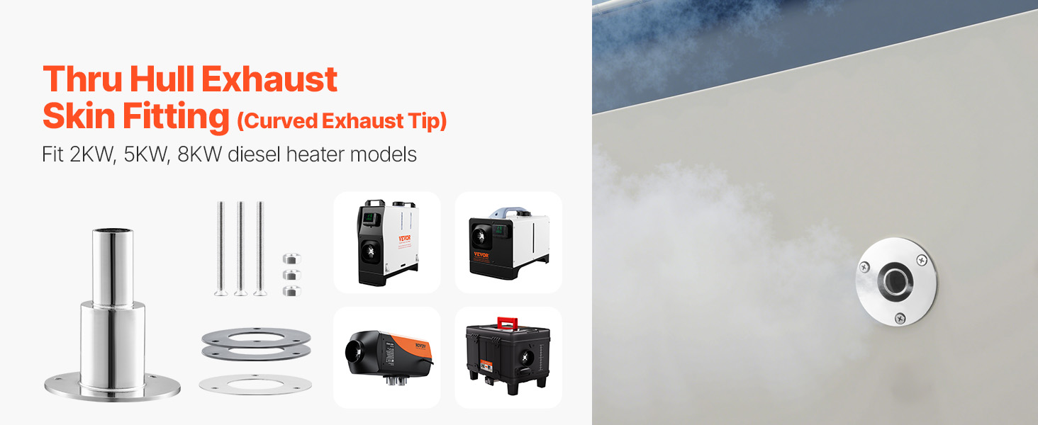 Súprava priameho upevnenia výfukového plášťa trupu je navrhnutá na rýchlu a jednoduchú inštaláciu. Pred výmenou odstráňte všetky poškodené komponenty a potom sa uistite, že sú všetky spoje pevne utiahnuté. Táto odolná súprava podporuje efektívne vedenie výfukových plynov pre naftové ohrievače.