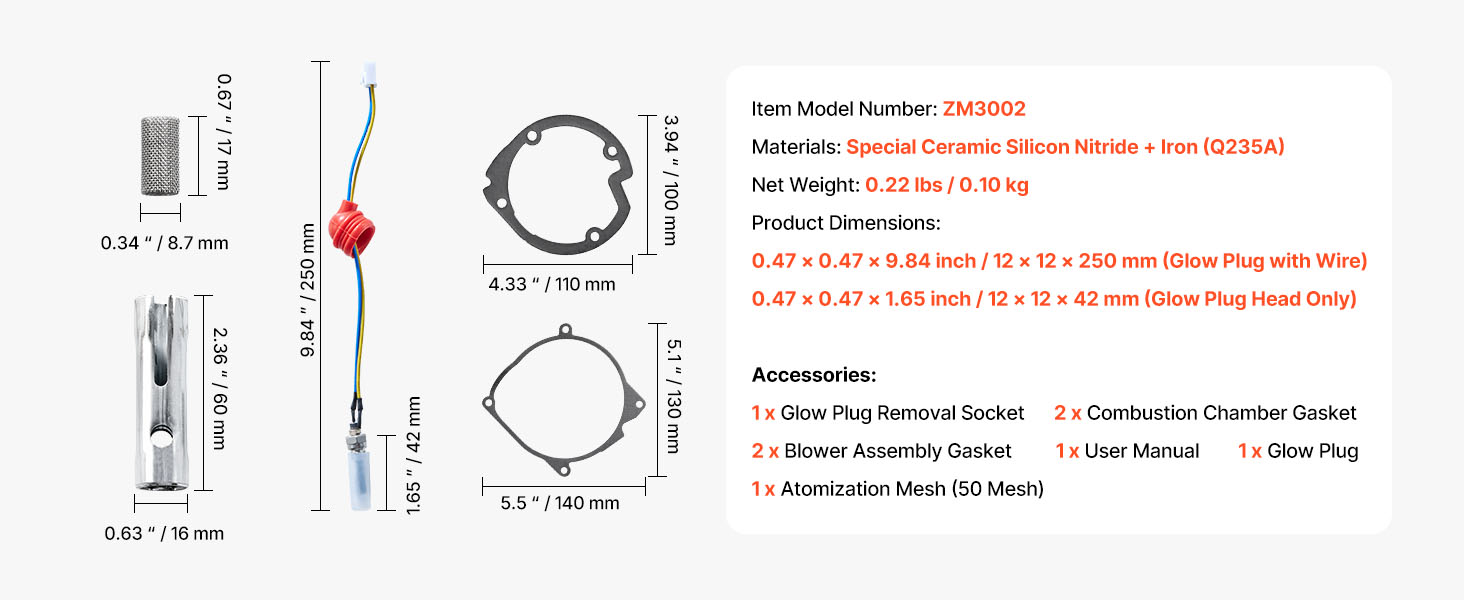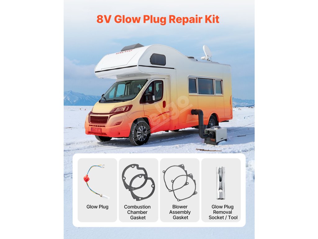 Táto univerzálna súprava na opravu žhaviacej sviečky je vhodná pre väčšinu 2KW, 5KW a 8KW dieselových ohrievačov. Kompletná s demontážnymi nástrojmi na rýchlu inštaláciu a údržbu pomáha zabezpečiť rýchlu aktiváciu vykurovacieho zariadenia v chladnom počasí. Vyrobená z vysokokvalitnej keramiky s nitridom kremíka pre dlhšie používanie a stabilný výkon.