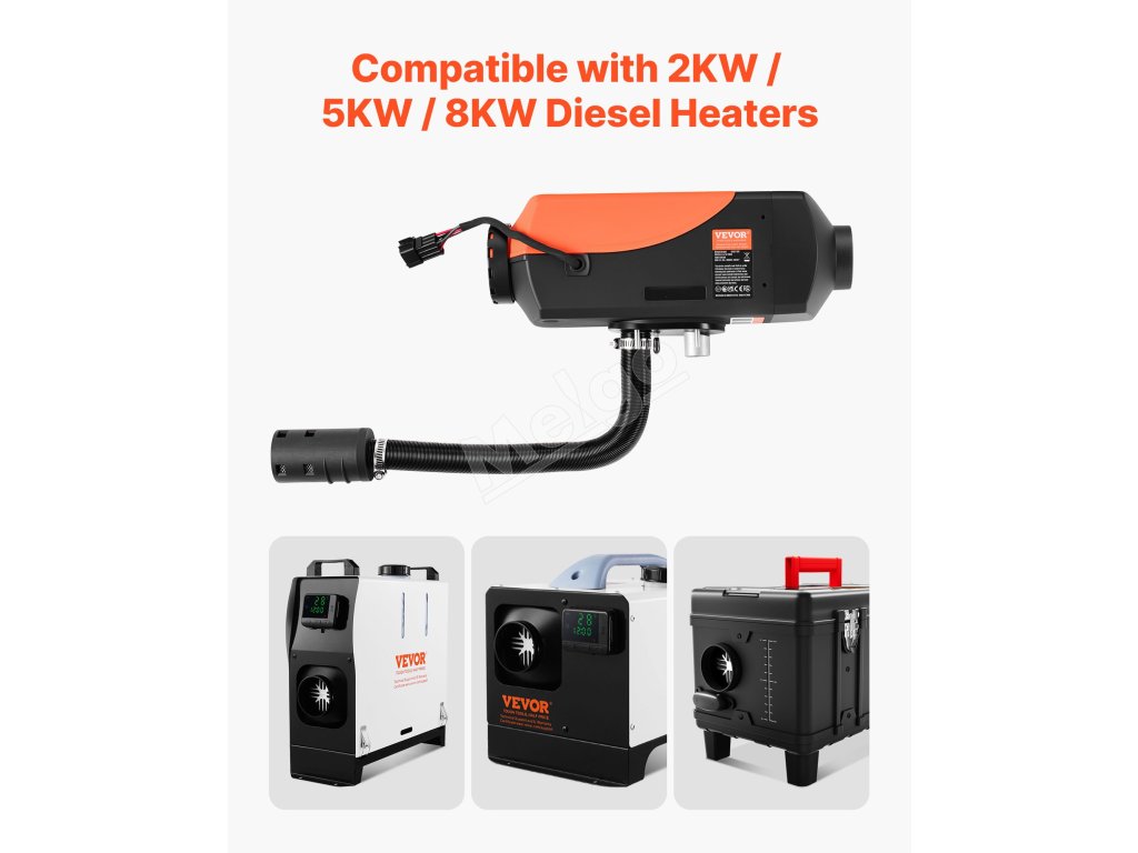 Naša súprava sacieho potrubia naftového kúrenia obsahuje 1 vzduchový filter, 1 sacie potrubie a 2 svorky, vďaka čomu je inštalácia rýchla a jednoduchá. Je kompatibilná s 2KW, 5KW a 8KW naftovými ohrievačmi a zabezpečuje plynulé prúdenie vzduchu a spoľahlivý výkon ohrevu v rôznych nastaveniach.