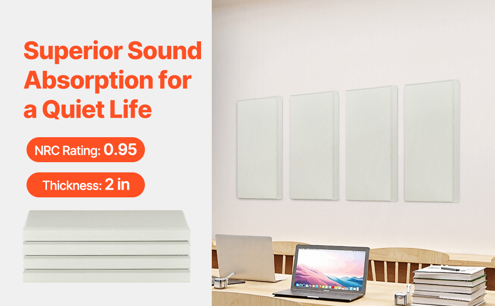 Akustické panely 4 ks, 2" hrubé, 23.6×11.8", samolepiace, béžové