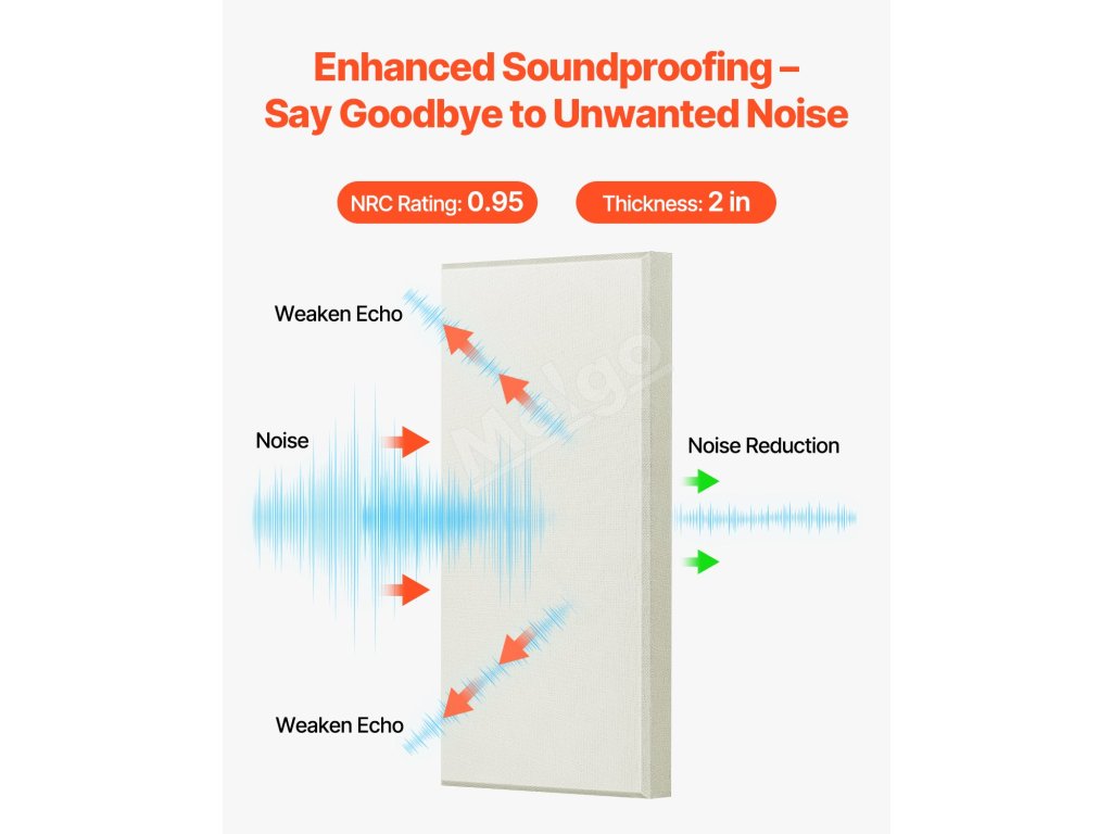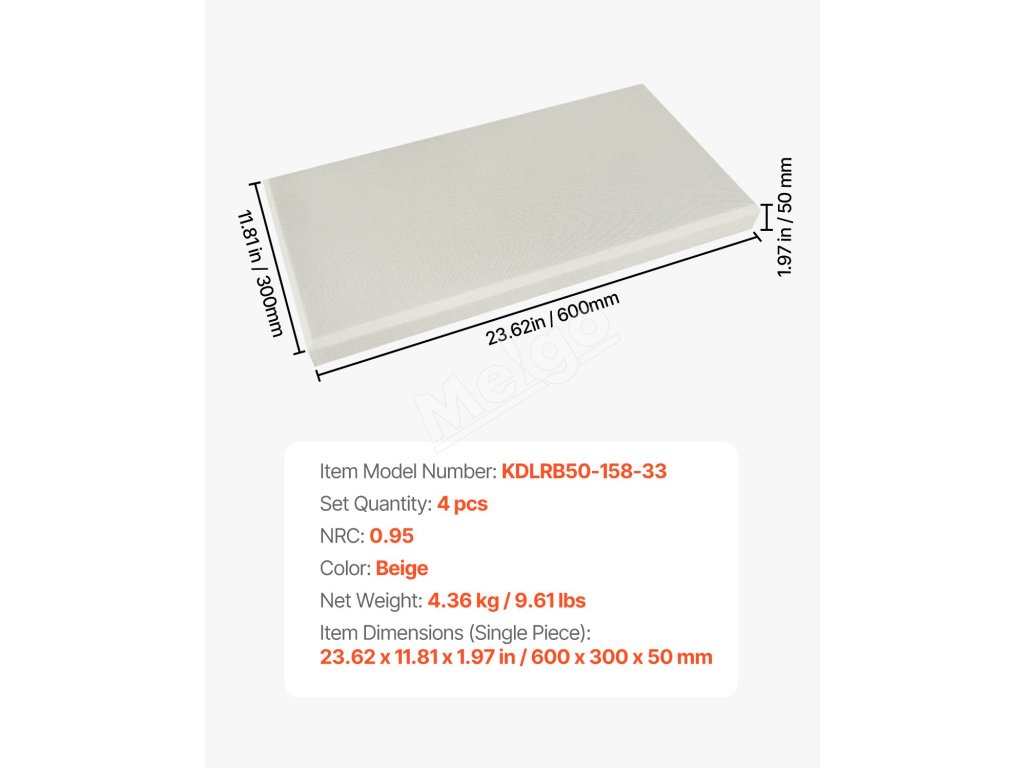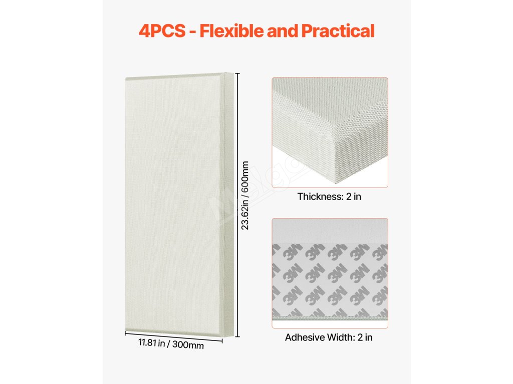 Akustické panely 4 ks, 2" hrubé, 23.6×11.8", samolepiace, béžové