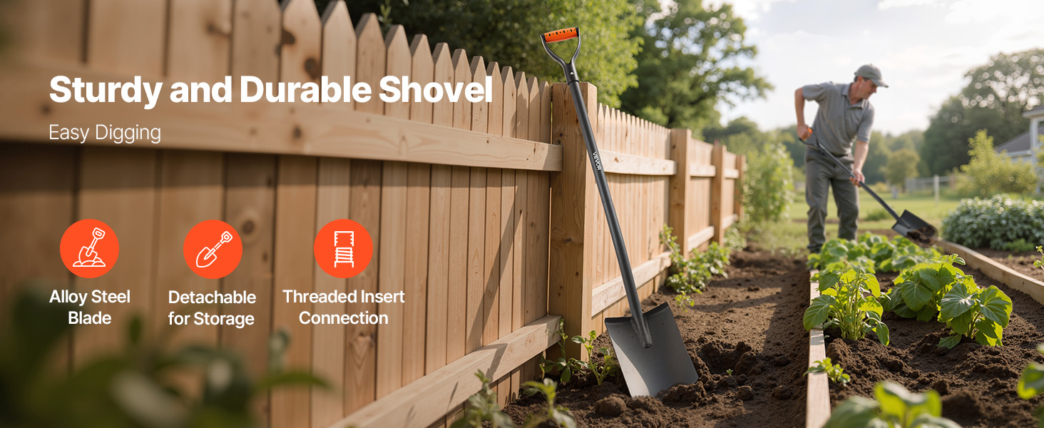 Táto lopata je určená na záhradnícke práce, ako je kopanie, výkop a sadenie. Je vybavená vysokopevnostnou čepeľou zo zliatiny, robustnou protišmykovou rukoväťou, nášľapnou hranou na zvýšenie sily a odnímateľnou konštrukciou na jednoduché skladovanie a prepravu.