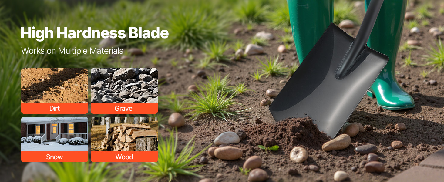 Plochá lopata používa čepeľ zo zliatiny s vysokou tvrdosťou, ktorá si poradí s rôznymi materiálmi. Či už ide o sypkú pôdu, pevný kameň alebo zamrznutý sneh, dá sa s ňou ľahko kopať a nie je pravdepodobné, že sa zlomí.