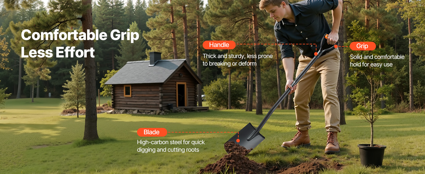 Táto prenosná lopata využíva konštrukciu s efektívnym využitím sily. Od čepele až po rukoväť je každá časť premyslene navrhnutá tak, aby sa znížila námaha pri práci, čo vám uľahčí prácu pri kopaní.