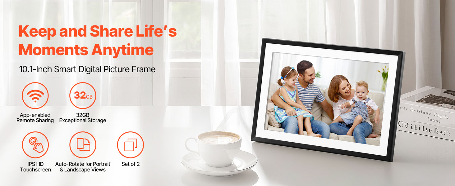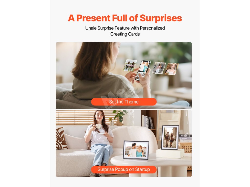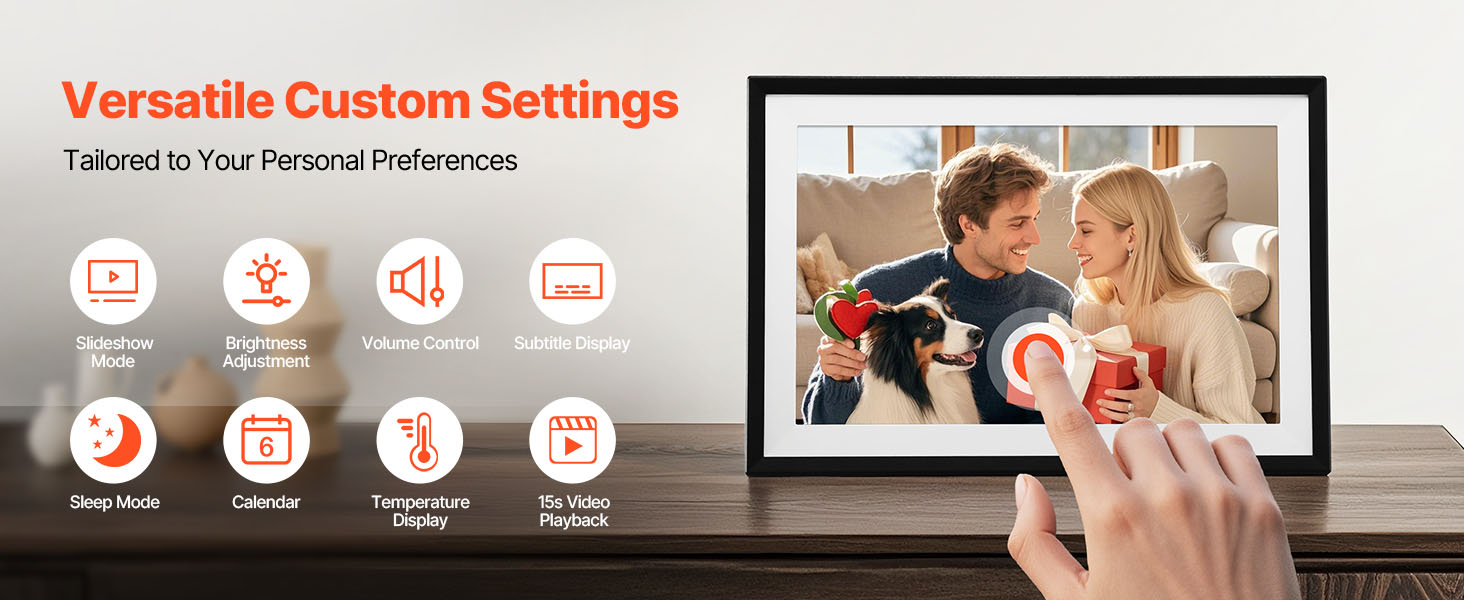 Inteligentný digitálny fotorámik je vybavený funkciou prehrávania prezentácií, kalendárom, podporou 15s videí a živou kvalitou obrazu, ktorá detailnejšie zobrazí vaše spomienky a umenie.