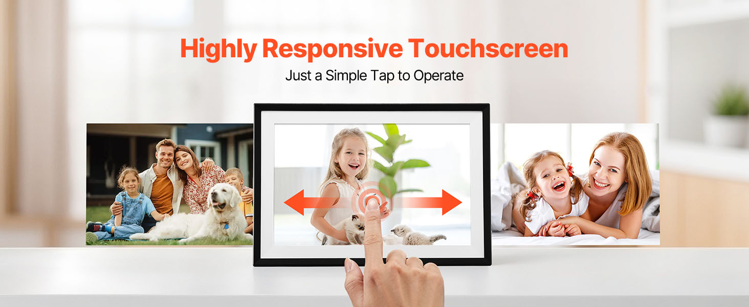 Tento elektronický fotorámik s citlivou dotykovou obrazovkou umožňuje prechádzať fotografie, vymazávať videá alebo pozastavovať prezentácie - dostatočne jednoducho pre všetky vekové kategórie vrátane detí a seniorov.