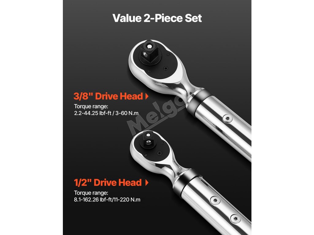 Elektronický momentový kľúč 2 ks, 1/2" a 3/8" náhon, ±2% presnosť