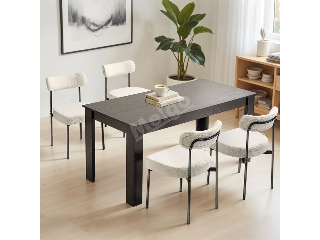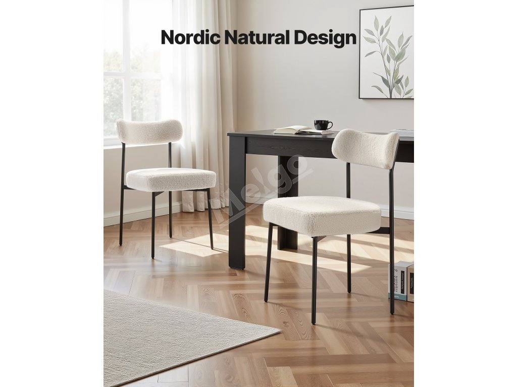 Jedálenské stoličky 2 ks, boucle poťah, zakrivené operadlo čierne nohy