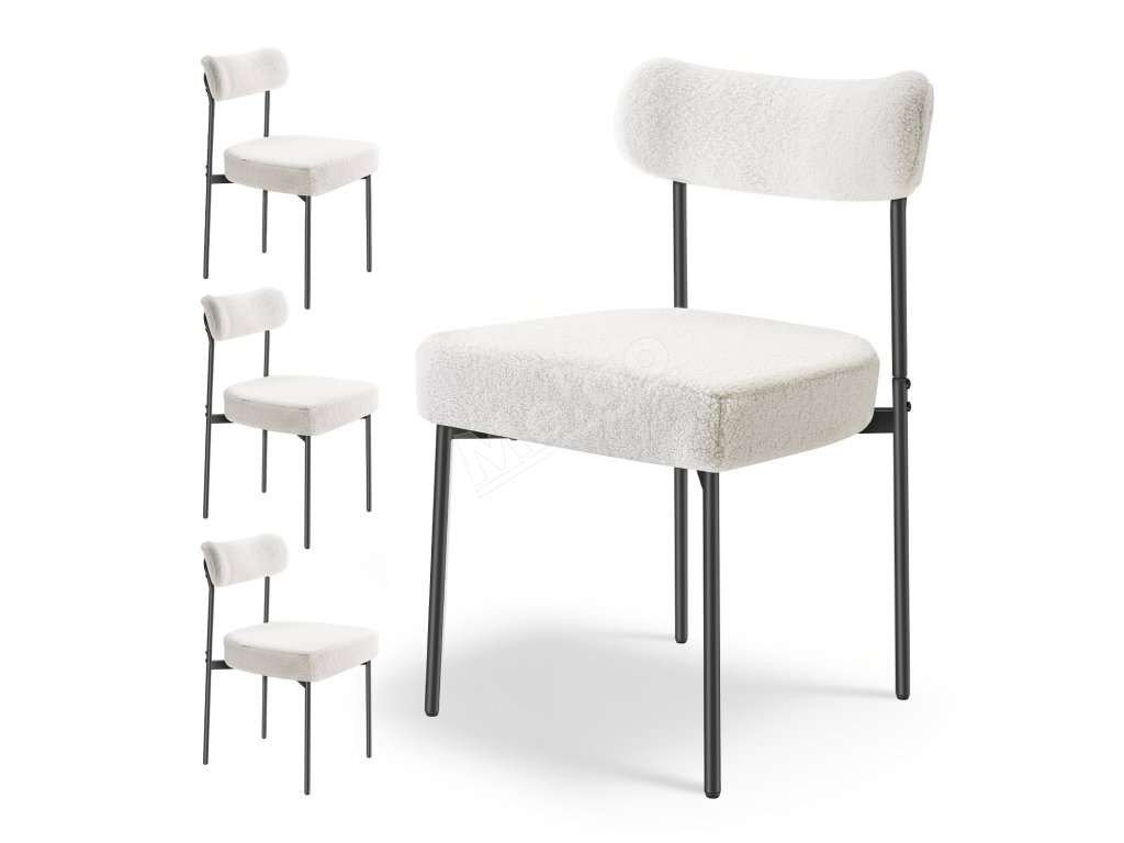 Jedálenské stoličky 4 ks, čalúnené boucle biele, čierne kovové nohy