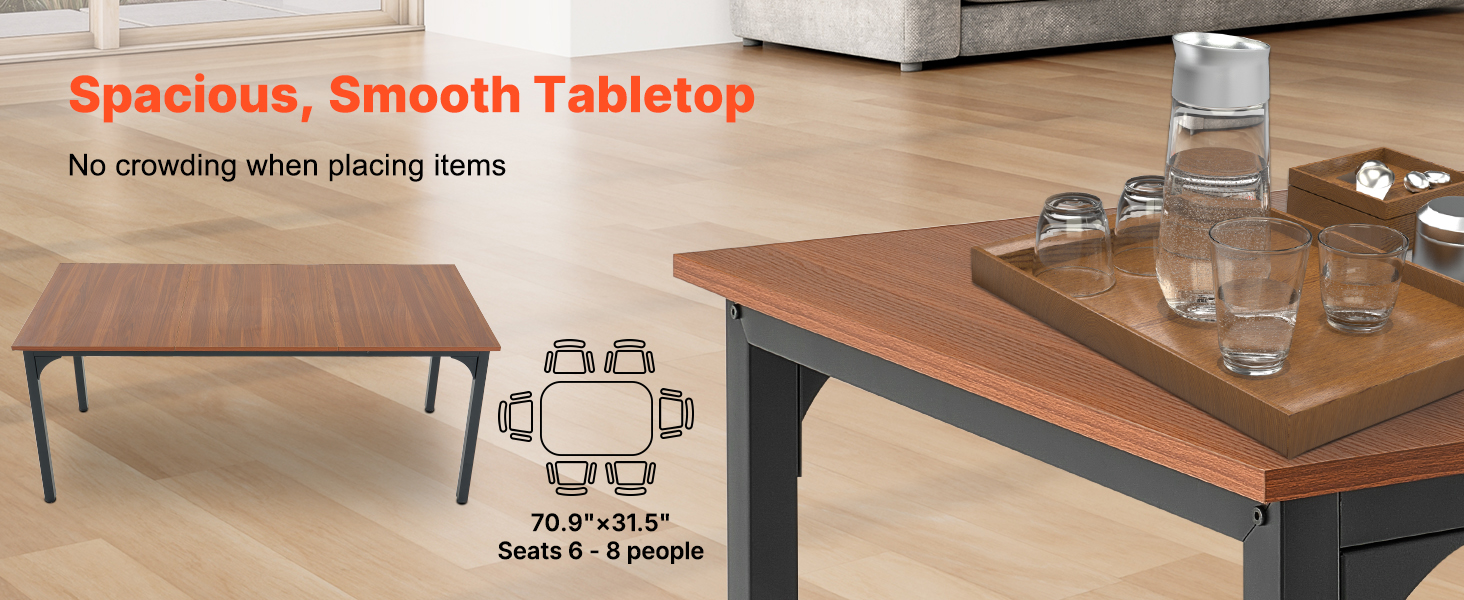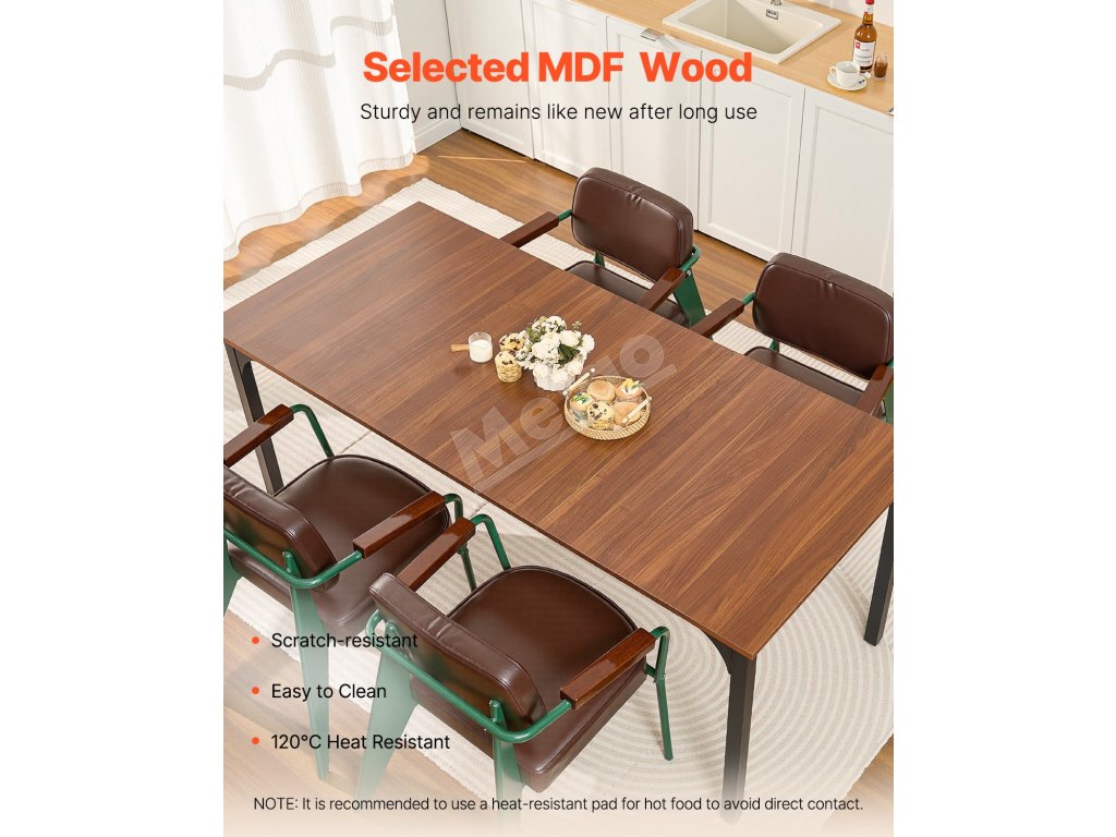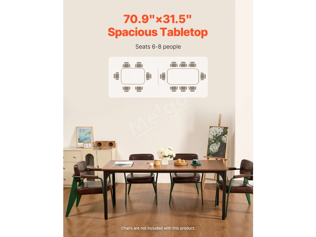 Jedálenský drevený stôl 71 inch, 6–8 osôb, železné nohy, hnedý