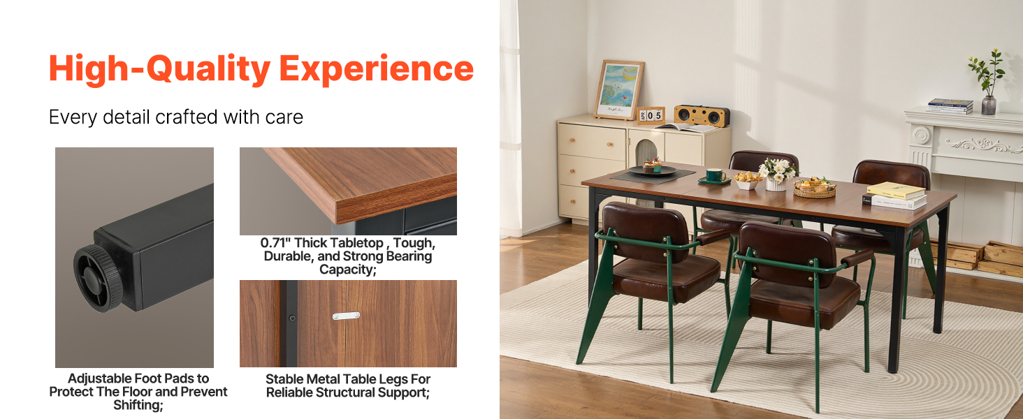 Kuchynský stôl s vysokou odolnosťou využíva materiál MDF s laminátovou povrchovou úpravou, ktorý zabezpečuje konštrukčnú stabilitu a odolnosť proti praskaniu, zatiaľ čo hladký povrch uľahčuje čistenie. Tento stôl zaručuje dlhodobý výkon pri zachovaní elegantného a upraveného vzhľadu.
