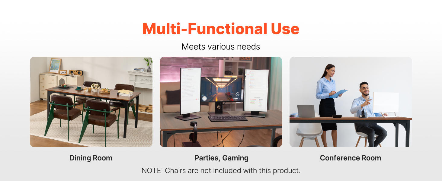 Multifunkčný stôl na voľný čas, ktorý poskytuje ideálne priestorové riešenie na rodinné stolovanie, každodennú prácu, voľnočasové aktivity alebo formálne stretnutia. Je vhodný na rôzne miesta a spĺňa rôzne potreby.