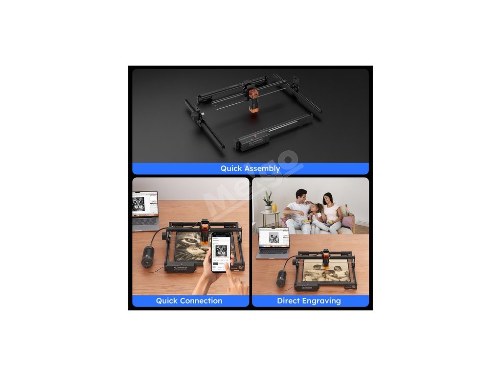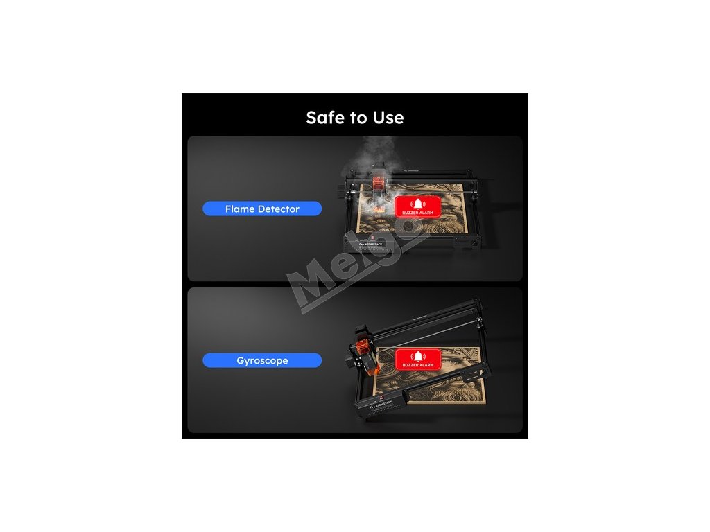 Laserová fréza a gravírovací stroj sa jednoducho a rýchlo montujú. Laserová gravírka ponúka gravírovaciu plochu 400 x 400 mm. Odnímateľný magnetický ochranný kryt lasera a dodávané ochranné okuliare môžu počas prevádzky chrániť vaše oči.