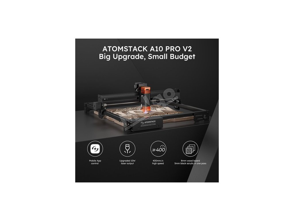 | Všeobecné | Značka: Značka: AtomStack Typ: Laserový gravírovací stroj Model: A10 Pro V2 Farba: čierna |