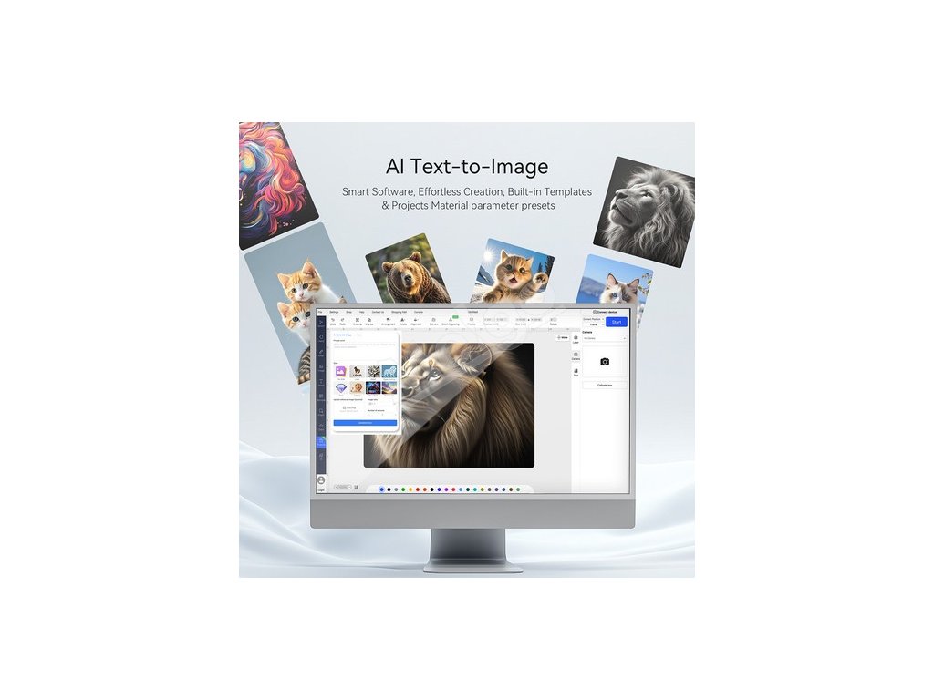Systém vybavený najnovším inteligentným softvérom AtomStack ponúka generovanie obrázkov s umelou inteligenciou, ktoré okamžite premení text na návrhy. Zabudovaná knižnica materiálov a projektov poskytuje bohaté šablóny na rýchle vytváranie, zatiaľ čo prednastavené nastavenia parametrov optimalizujú výsledky gravírovania pre bežné materiály. Stroj dokáže automaticky rozpoznať príslušenstvo, ako je rotačný alebo upínací modul, a prepnúť na príslušný režim obrábania, čím sa zvyšuje efektivita a uľahčuje obsluha.