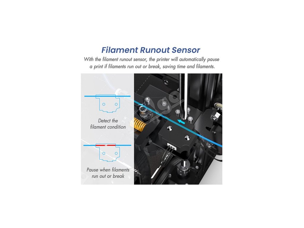 Snímač vyčerpania vlákna umožňuje tlačiarni automaticky pozastaviť tlač, ak dôjde vlákno alebo sa preruší, čím sa šetrí čas a vlákno.