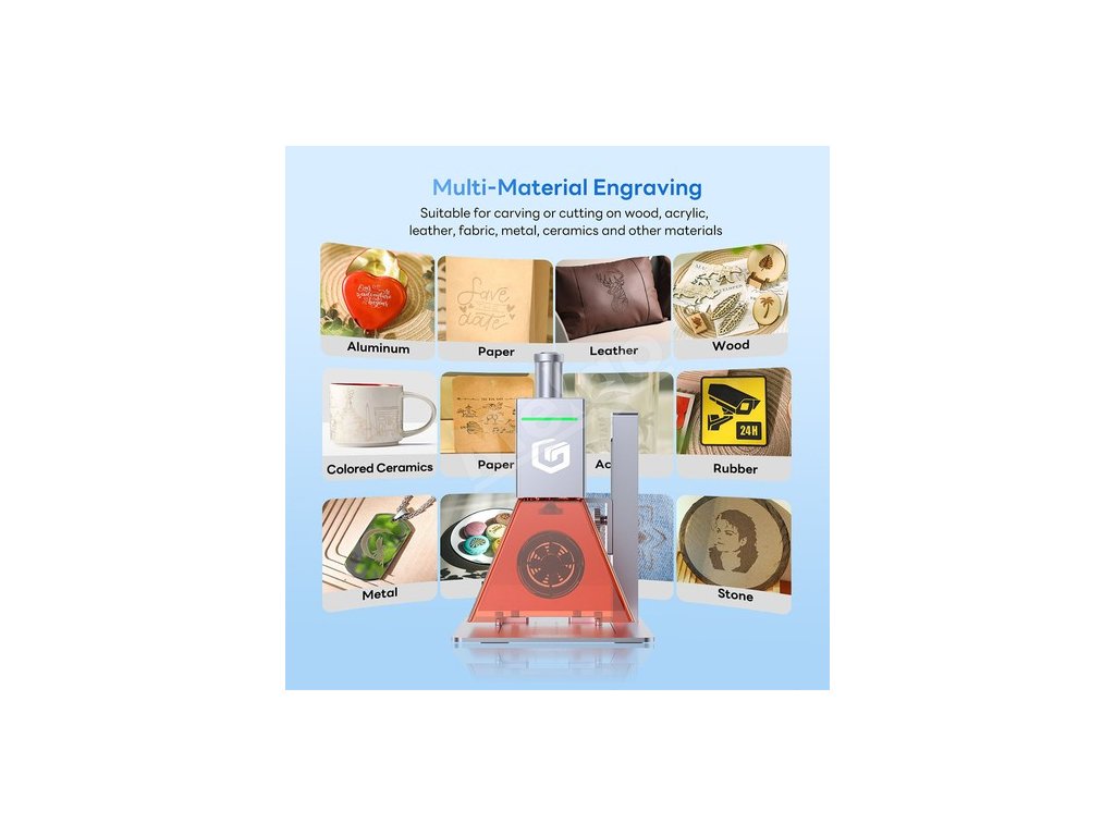 Z hľadiska výkonu je tento gravírovací stroj známy svojou presnosťou, rýchlosťou a schopnosťou manipulácie s materiálom, s presnosťou gravírovania až 0,02 mm pri 12W variante a 0,02 mm pri 6W variante, a navyše rýchlosťou až 5 000 mm/s. Dokáže prispôsobiť širokú škálu predmetov, od fliaš na víno až po drevené podložky, čím demonštruje svoju prispôsobivosť na osobné a firemné použitie.