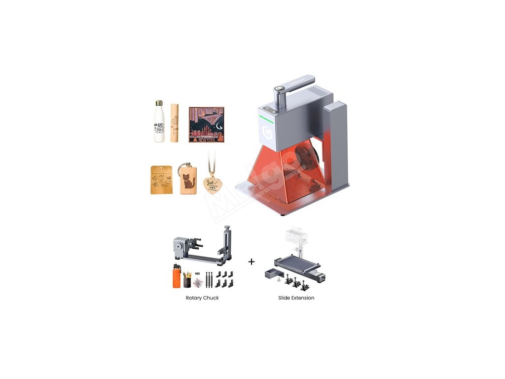 Obsah balenia | 1 x Laserový gravírovací stroj 1 x Laser 1 x Spodná doska 1 x Elektrický zdvíhací podporný stĺp 1 x Kábel napájacieho adaptéra 4 x Skrutky s palcom 1 x Polohovací diel v tvare L 1 x Montážna konzola s dvoma skrutkami s gombíkom 1 x 2.5 Šesťhranný skrutkovač 1 x Karta TF a čítačka kariet 4 x skrutky M4x8 1 x Ochranný kryt s ventilátorom 2 x Gravírované drevené dosky 2 x Kraftové papierové listy 5 x Čierne gravírovacie karty 1 x Pravítko 1 x Duálny kábel typu C 1 x Dátový kábel 1 x Okuliare 1 x Utierka na okuliare 1 x Návod na použitie 1 x Otočné skľučovadlo 1 x Predlžovacia súprava (120x330 mm/ 0.39x1,08 palca) |