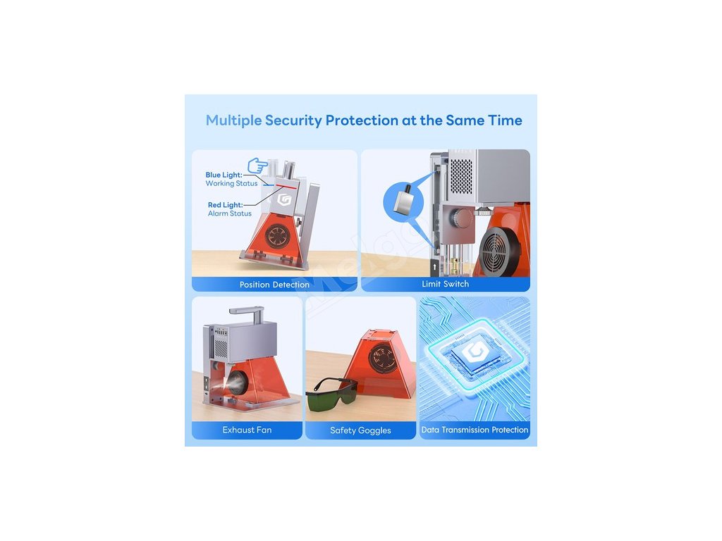 Obsah balenia | 1 x Laserový gravírovací stroj 1 x Laser 1 x Spodná doska 1 x Elektrický zdvíhací podporný stĺp 1 x Kábel napájacieho adaptéra 4 x Skrutky s palcom 1 x Polohovací diel v tvare L 1 x Montážna konzola s dvoma skrutkami s gombíkom 1 x 2.5 Šesťhranný skrutkovač 1 x Karta TF a čítačka kariet 4 x skrutky M4x8 1 x Ochranný kryt s ventilátorom 2 x Gravírované drevené dosky 2 x Kraftové papierové listy 5 x Čierne gravírovacie karty 1 x Pravítko 1 x Duálny kábel typu C 1 x Dátový kábel 1 x Okuliare 1 x Utierka na okuliare 1 x Návod na použitie 1 x Rozširujúca súprava (120x330 mm/ 0.39x1,08 palca) |