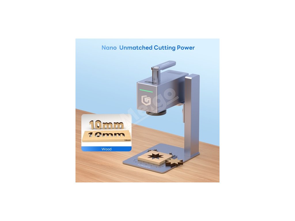 Nano Pro má výkonný laserový modul s optickým výstupom 12 W, ktorý je vybavený najmodernejšou technológiou vylepšenia lasera a zvyšuje reznú kapacitu tohto stroja. Dokáže rezať 0,39" (10 mm) basglejové drevo a 0,17" (4,5 mm) akrylát, čo je o 20 % viac ako u ostatných.