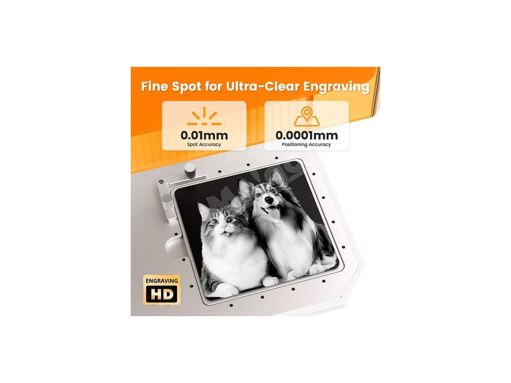 Tento laserový gravírovací stroj je vybavený vysokofrekvenčným galvanometrickým modulom priemyselnej triedy s viacvrstvovou povrchovou úpravou, ktorý odráža 99 % energie, čím minimalizuje spotrebu lasera a predlžuje jeho životnosť. Jeho maximálna rýchlosť gravírovania je 5000 mm/s, čo zaručuje vysokú rýchlosť a vysokú kvalitu gravírovania, čím sa výrazne zvyšuje efektivita práce.