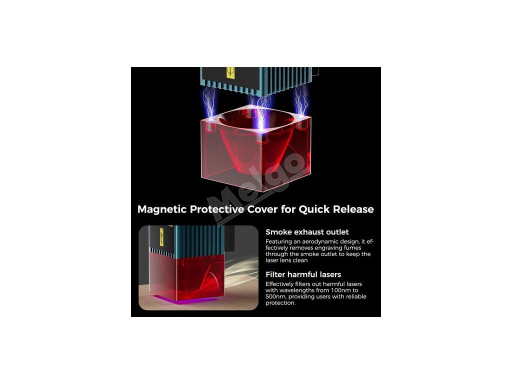 Laserové gravírovacie zariadenie C1 možno používať s ochranným krytom, ktorého pridaním sa zariadenie dostáva do súladu s normami pre laserové gravírovacie zariadenia triedy 1. Dvere sa po otvorení zastavia, čím sa zvyšuje bezpečnosť.