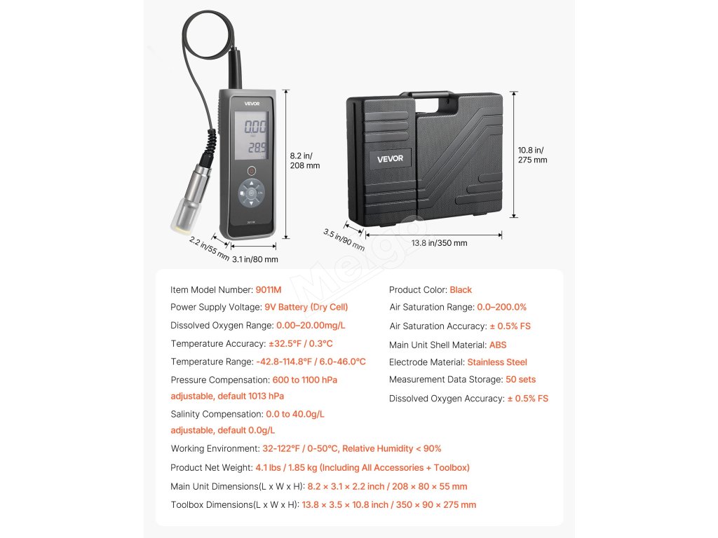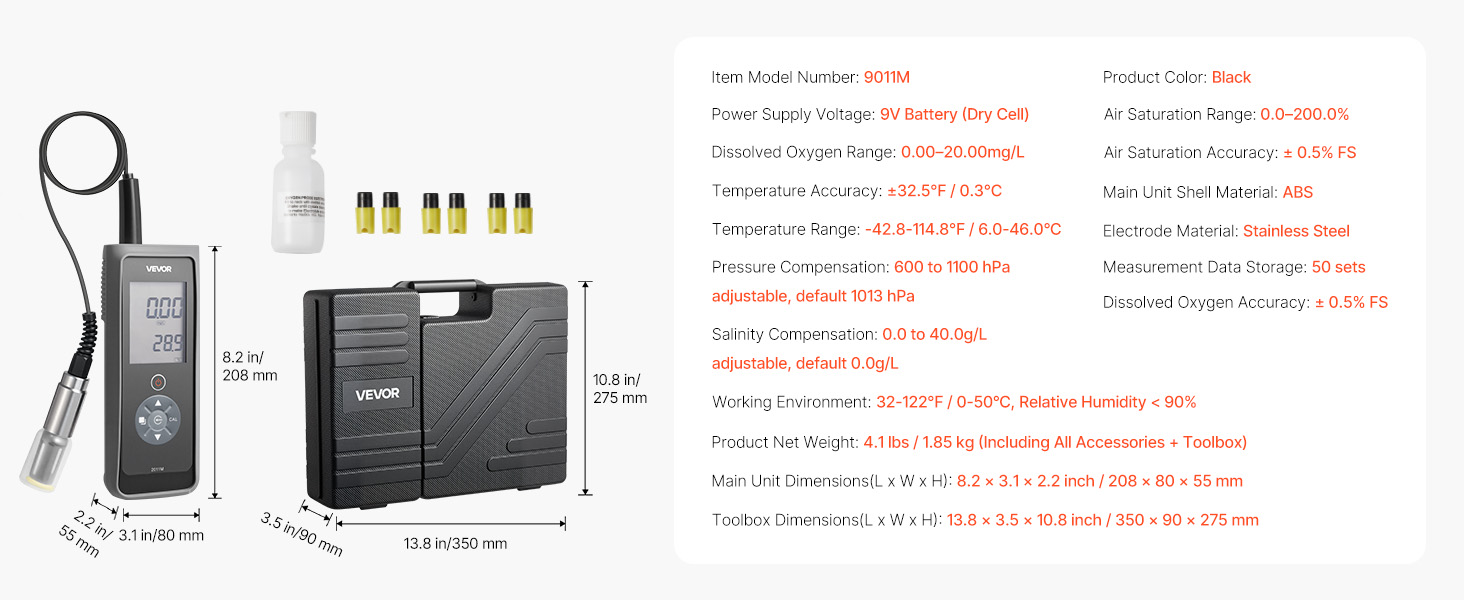 Či už pracujete vonku v daždi alebo v plytkej vode, táto súprava na meranie rozpusteného kyslíka zostáva funkčná a poskytuje spoľahlivý výkon pri všetkých vašich meracích úlohách.