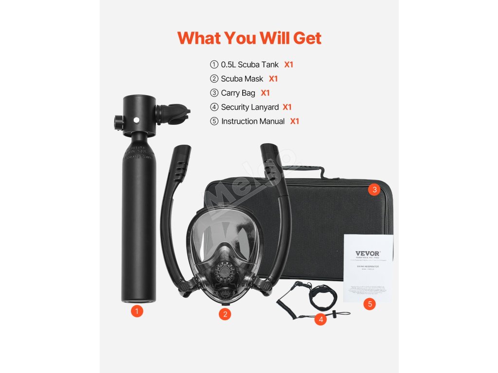 VEVOR 0,5 l potápačská nádrž 32,81 ft hĺbka potápanie pľúca Tank Kit s maskou šnorchel