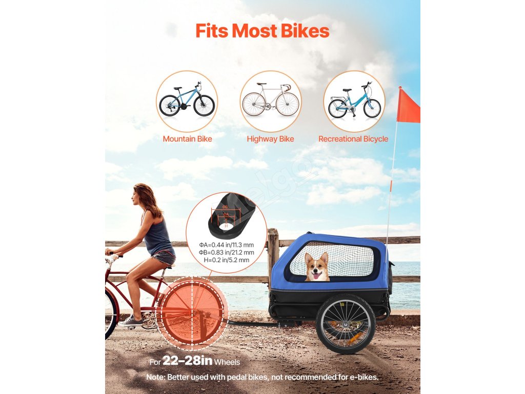Odpoveď: Je lepšie používať ho s bicyklom s pedálmi. Ak ho používate s elektrobicyklom, udržujte rýchlosť pod 8 MPH (13 km/h) a pri zatáčaní znížte rýchlosť na menej ako 3 MPH (5 km/h), aby ste zaistili bezpečnosť vášho domáceho maznáčika.