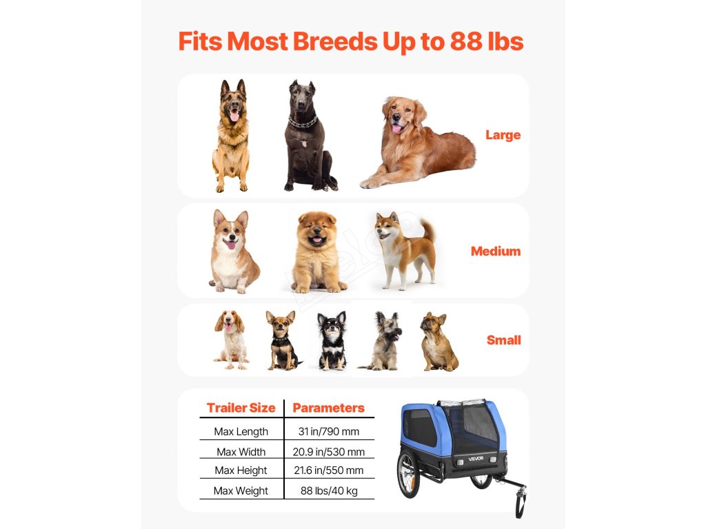 Prívesný vozík pre psa, nosnosť 40 kg, skladací rám, univerzálny spoj