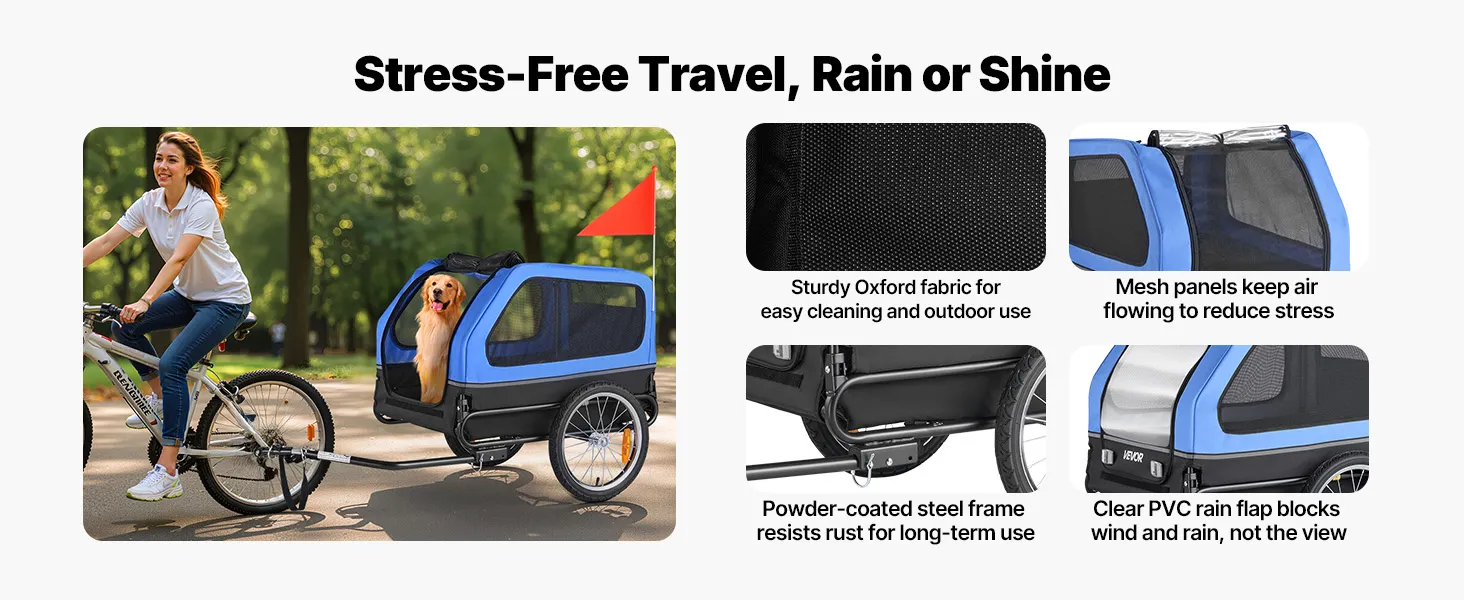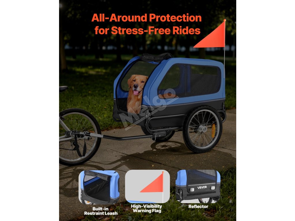 Tento skladací nosič na bicykel s vozíkom pre domáce zvieratá je skvelý na to, aby ste so sebou na vychádzky brali stredne veľké až veľké psy. Vďaka robustnému oceľovému rámu, priedušným sieťovým panelom a zabudovanému vodítku udrží vášho domáceho miláčika v bezpečí a pohodlí pri každom dobrodružstve.