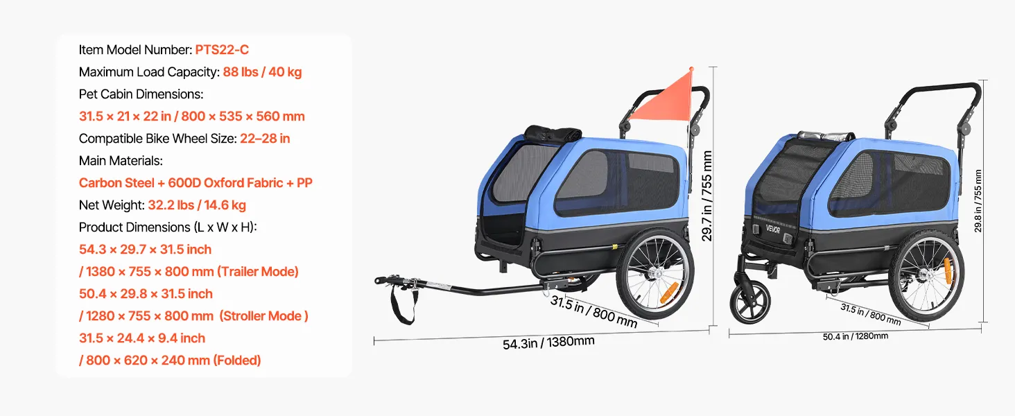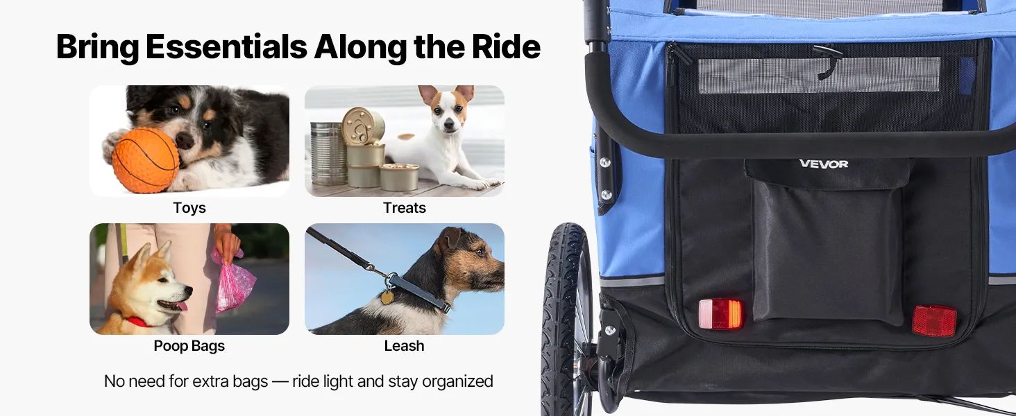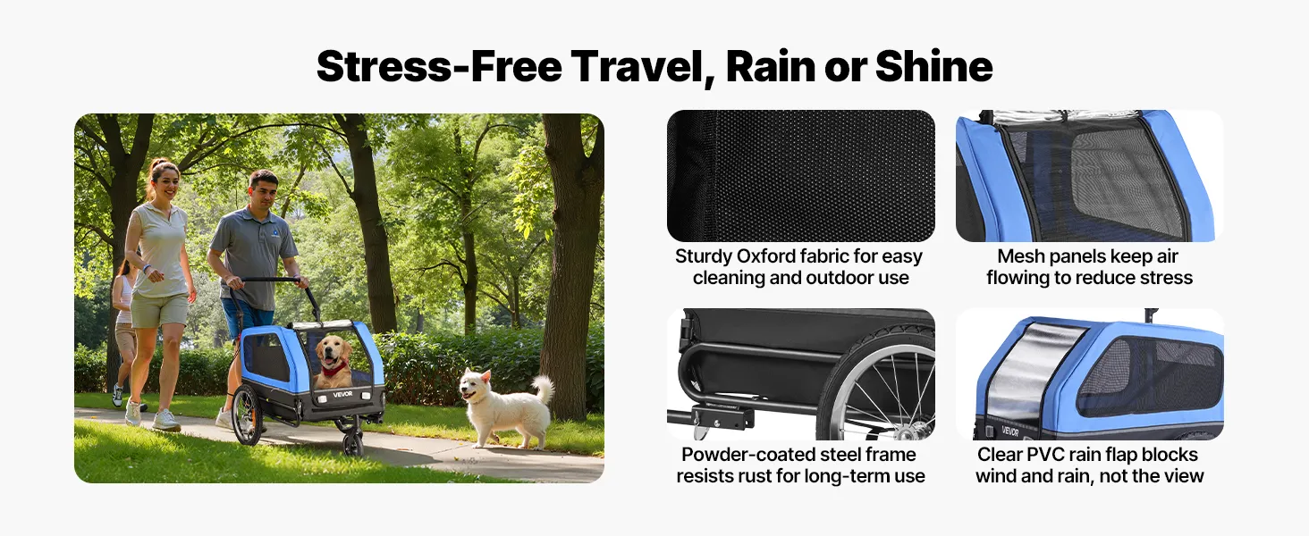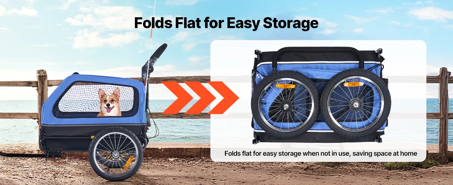 Tento skladací nosič na bicykel s vozíkom pre domáce zvieratá je skvelý na to, aby ste so sebou na vychádzky brali stredne veľké až veľké psy. Vďaka robustnému oceľovému rámu, priedušným sieťovým panelom a zabudovanému vodítku udrží vášho domáceho miláčika v bezpečí a pohodlí pri každom dobrodružstve.