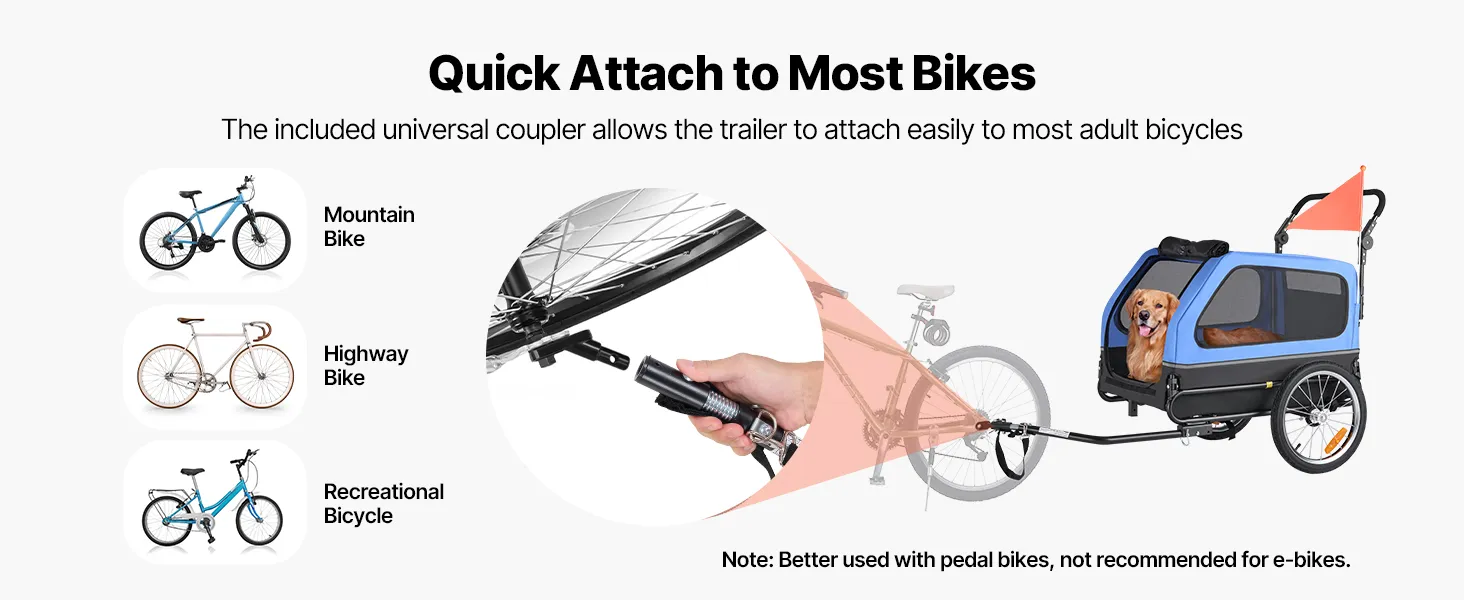Odpoveď: Je lepšie používať ho s bicyklom s pedálmi. Ak ho používate s elektrobicyklom, udržujte rýchlosť pod 8 MPH (13 km/h) a pri zatáčaní znížte rýchlosť na menej ako 3 MPH (5 km/h), aby ste zaistili bezpečnosť vášho domáceho maznáčika.