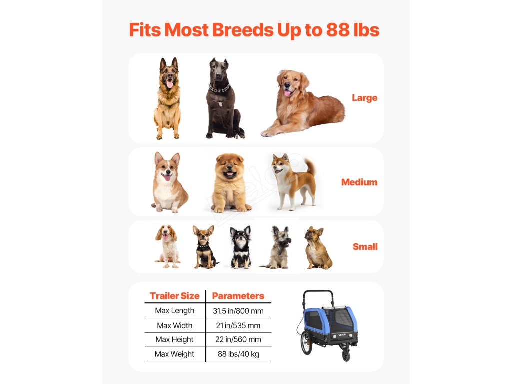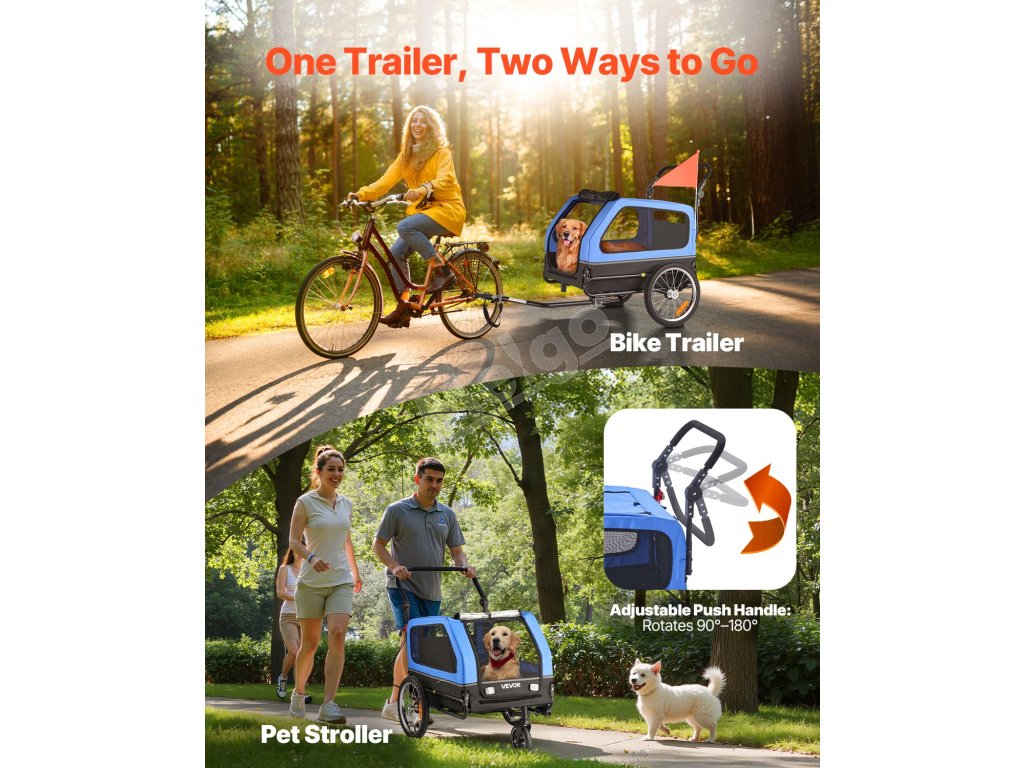 Vozík pre psa na bicykel do 40 kg, 2v1 kočík/vozík, skladací rám