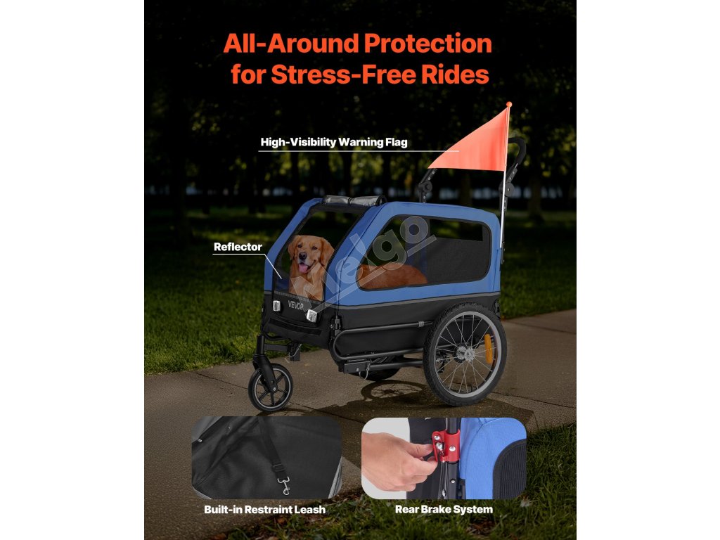 Tento skladací nosič na bicykel s vozíkom pre domáce zvieratá je skvelý na to, aby ste so sebou na vychádzky brali stredne veľké až veľké psy. Vďaka robustnému oceľovému rámu, priedušným sieťovým panelom a zabudovanému vodítku udrží vášho domáceho miláčika v bezpečí a pohodlí pri každom dobrodružstve.