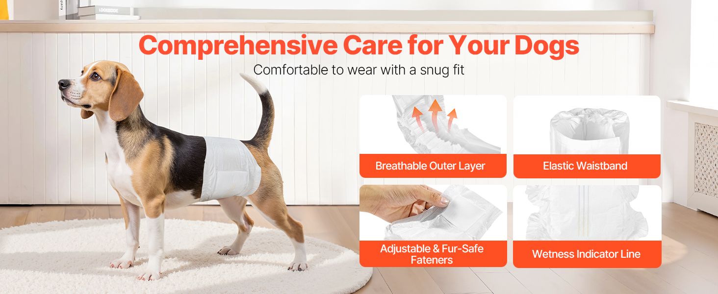 Tieto jednorazové plienky pre psov ponúkajú mimoriadnu absorpčnú schopnosť a 360° ochranu proti úniku, rýchlo zadržiavajú tekutinu a udržujú vašich psov v suchu a pohodlí. Vďaka elastickému pásu, zapínaniu šetrnému k srsti a indikátoru vlhkosti výrazne zvyšujú komfort vášho psa a pohodlie pri starostlivosti o domáce zvieratá.