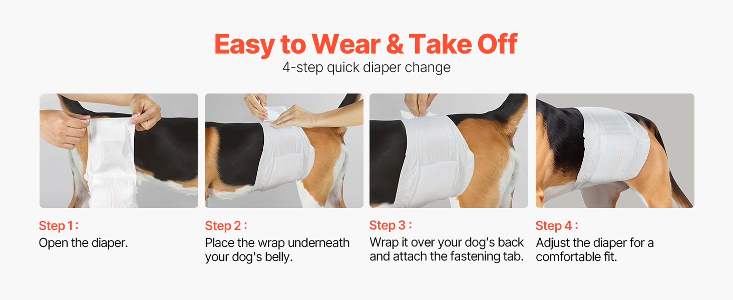 Tieto brušné plienky pre psíkov možno vymeniť len v 4 jednoduchých krokoch. Či už ste zaneprázdnený majiteľ domáceho maznáčika, alebo ho vychovávate prvýkrát, výmena plienok pre vášho psa bude rýchla a bezproblémová, vďaka čomu bude starostlivosť o domáceho maznáčika bezproblémová.