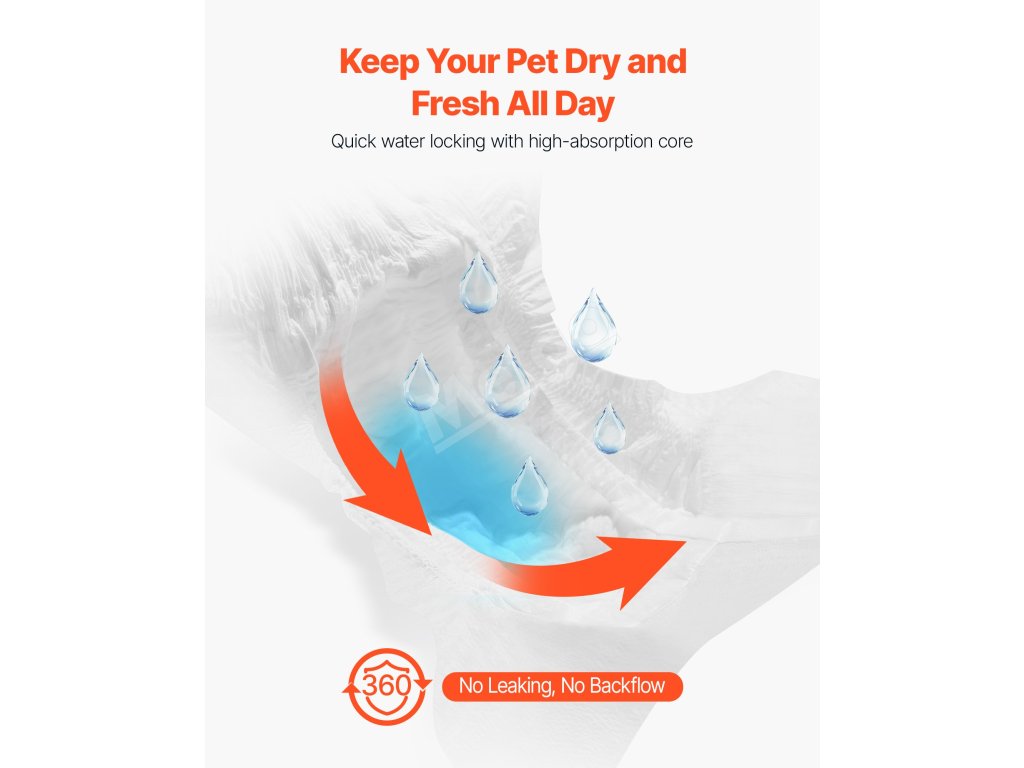 Vďaka superabsorpčnému jadru tieto jednorazové plienky pre psy rýchlo uzamknú tekutinu bez bočného úniku. Pomáhajú udržiavať vášho domáceho miláčika a domácnosť v suchu, čistote a bez zápachu, čím zabezpečujú pohodlné prostredie pre vášho domáceho miláčika aj váš priestor.