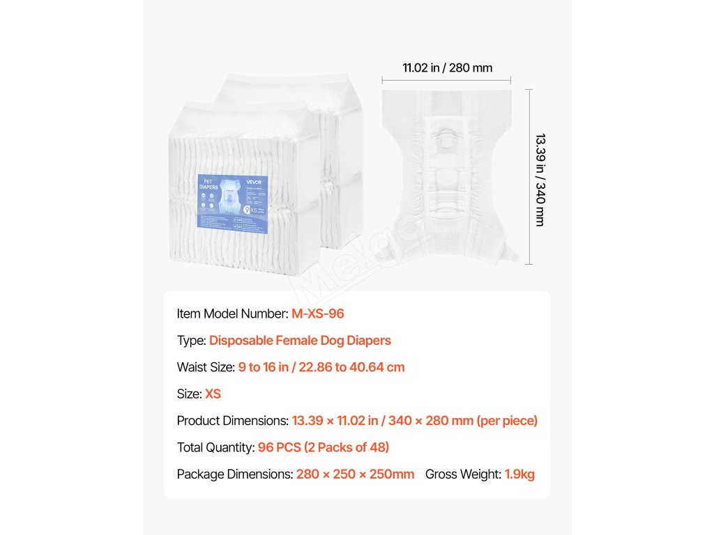 Jednorazové nohavičky pre fenky XS 96 ks, 360° proti úniku, indikátor