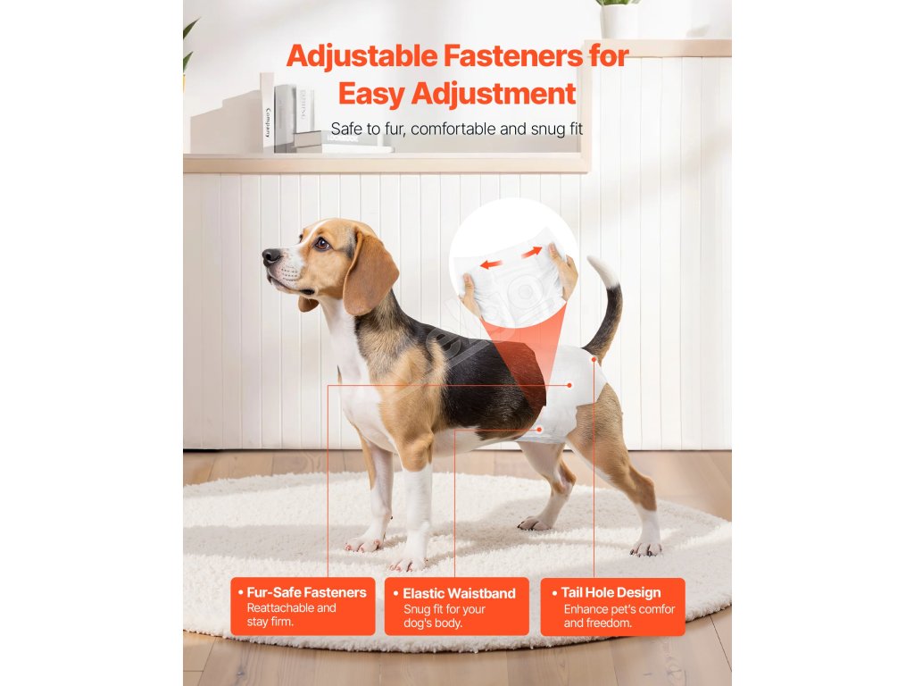 Vďaka priedušnej vonkajšej vrstve udržujú tieto plienky pre psy pre sučky vášho psa v suchu a pohodlí. Elastický pás zaisťuje pohodlné nosenie a indikátor vlhkosti, ktorý vás upozorní, keď je čas na výmenu. Nastaviteľné, pre kožušinu bezpečné zapínanie a otvor na chvoste zaisťujú priliehavé nosenie a väčšie pohodlie.
