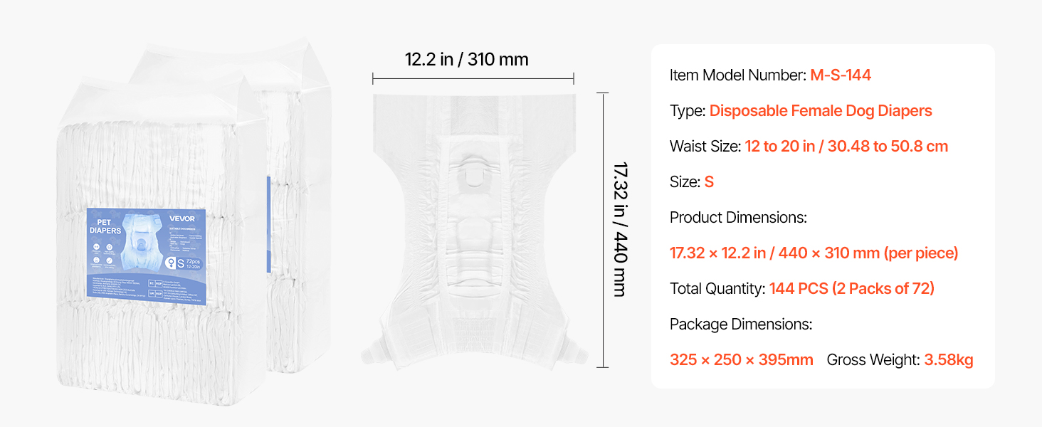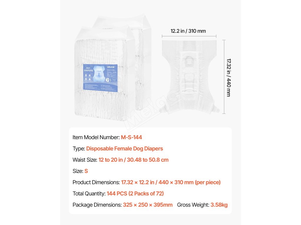 Jednorazové plienky pre feny, 360° ochrana, indikátor, s, 144 ks