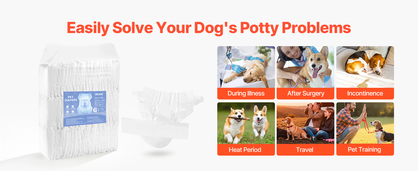 Ideálne pre rôzne situácie, ako je zotavenie z choroby, starostlivosť po operácii, inkontinencia seniorov, cykly tepla, cestovanie a tréning na nočník. Tieto superabsorpčné dámske plienky pre psov uľahčujú každodennú starostlivosť o domáceho miláčika, ľahko riešia problémy s nočníkom vášho psa a vám poskytujú pokoj.