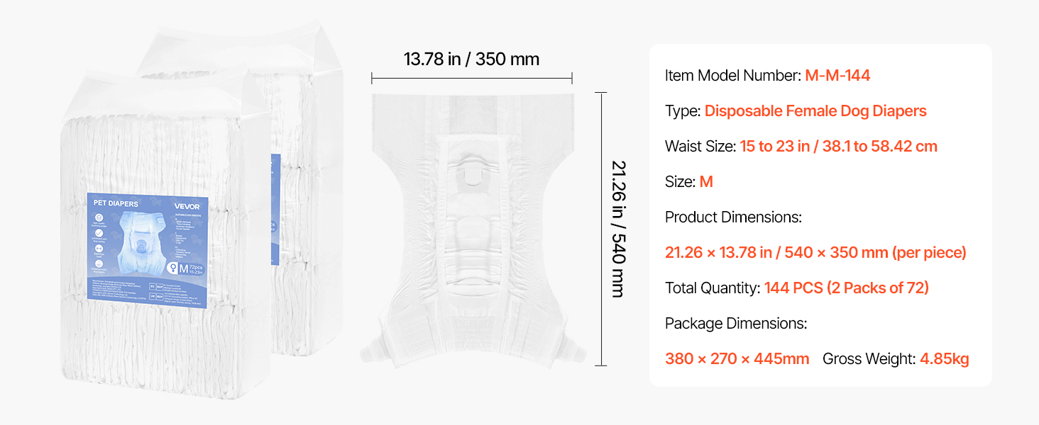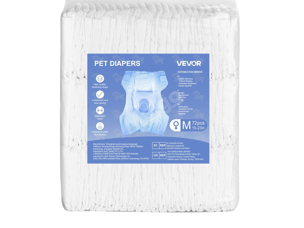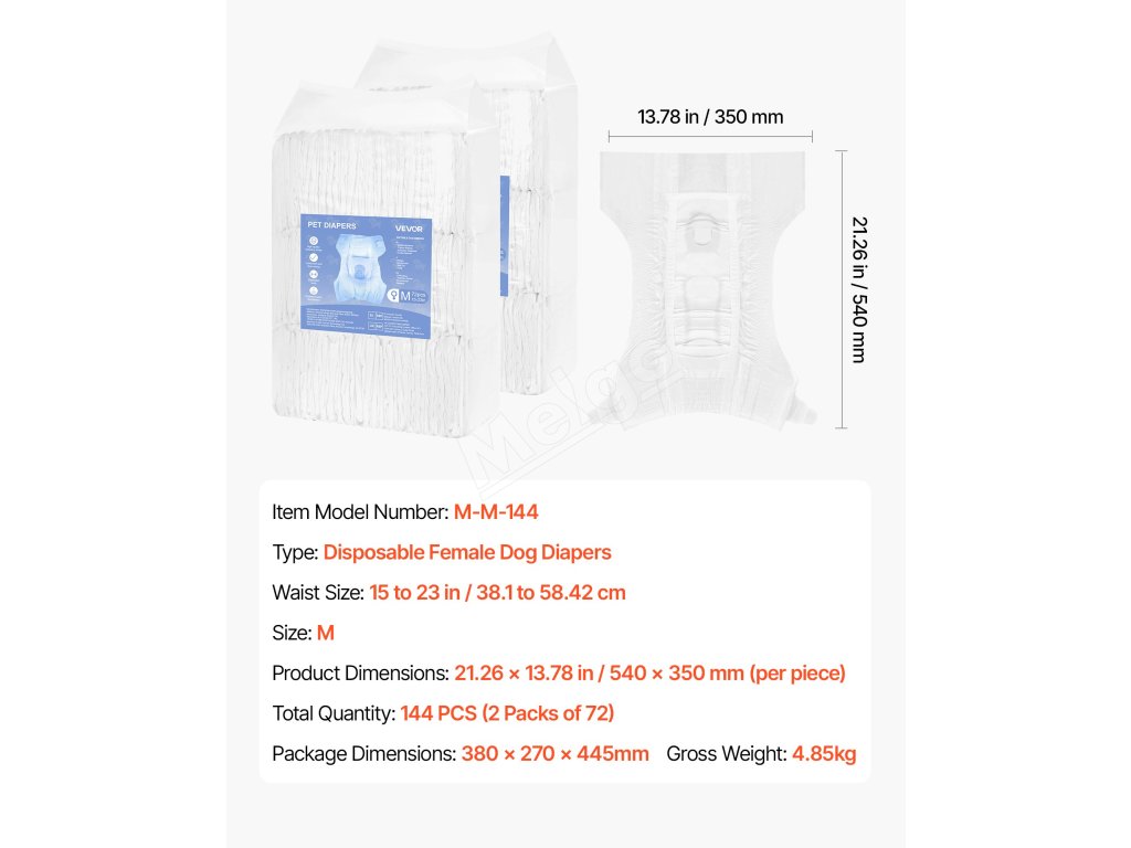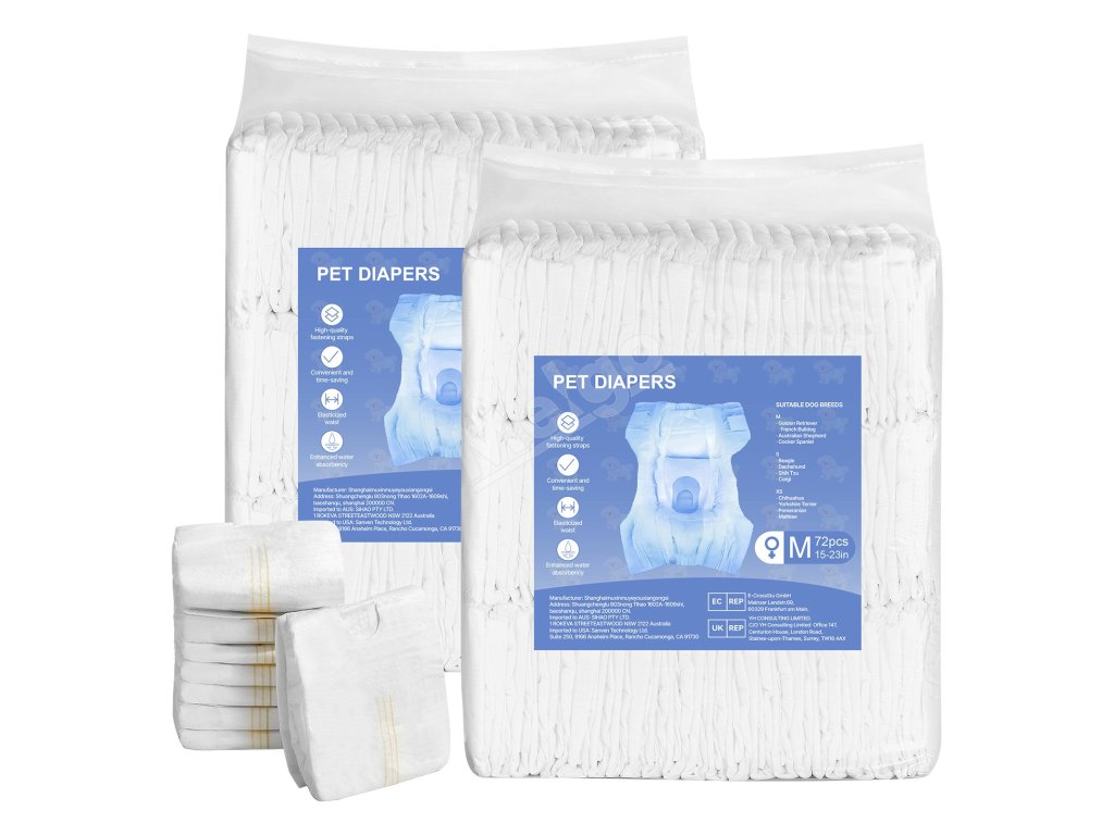Jednorazové plienky pre sučky, veľ. m, super savé, indikátor, 144 ks