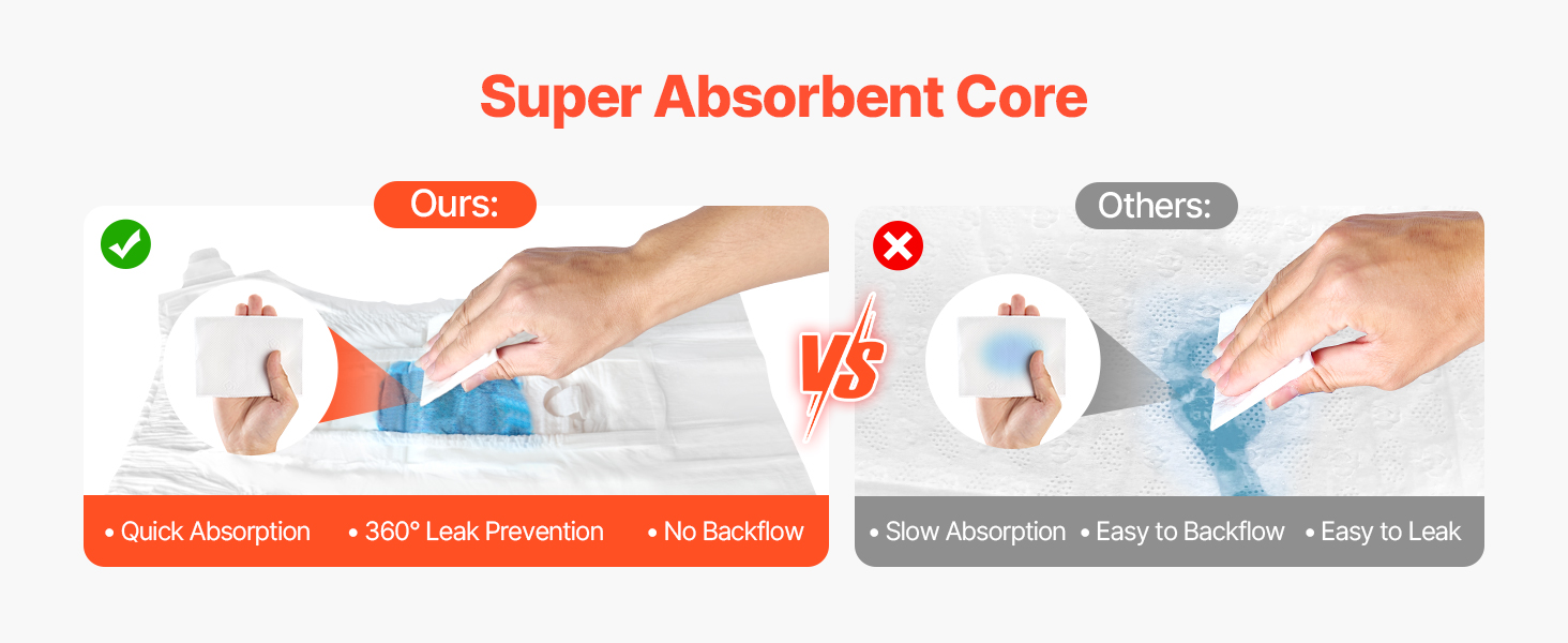Vďaka superabsorpčnému jadru tieto jednorazové plienky pre psy rýchlo uzamknú tekutinu bez bočného úniku. Pomáhajú udržiavať vášho domáceho miláčika a domácnosť v suchu, čistote a bez zápachu, čím zabezpečujú pohodlné prostredie pre vášho domáceho miláčika aj váš priestor.